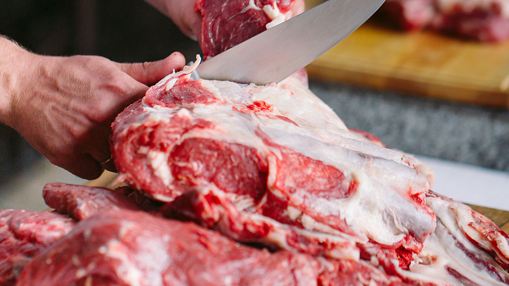 Cook Cuts Meat With a Knife